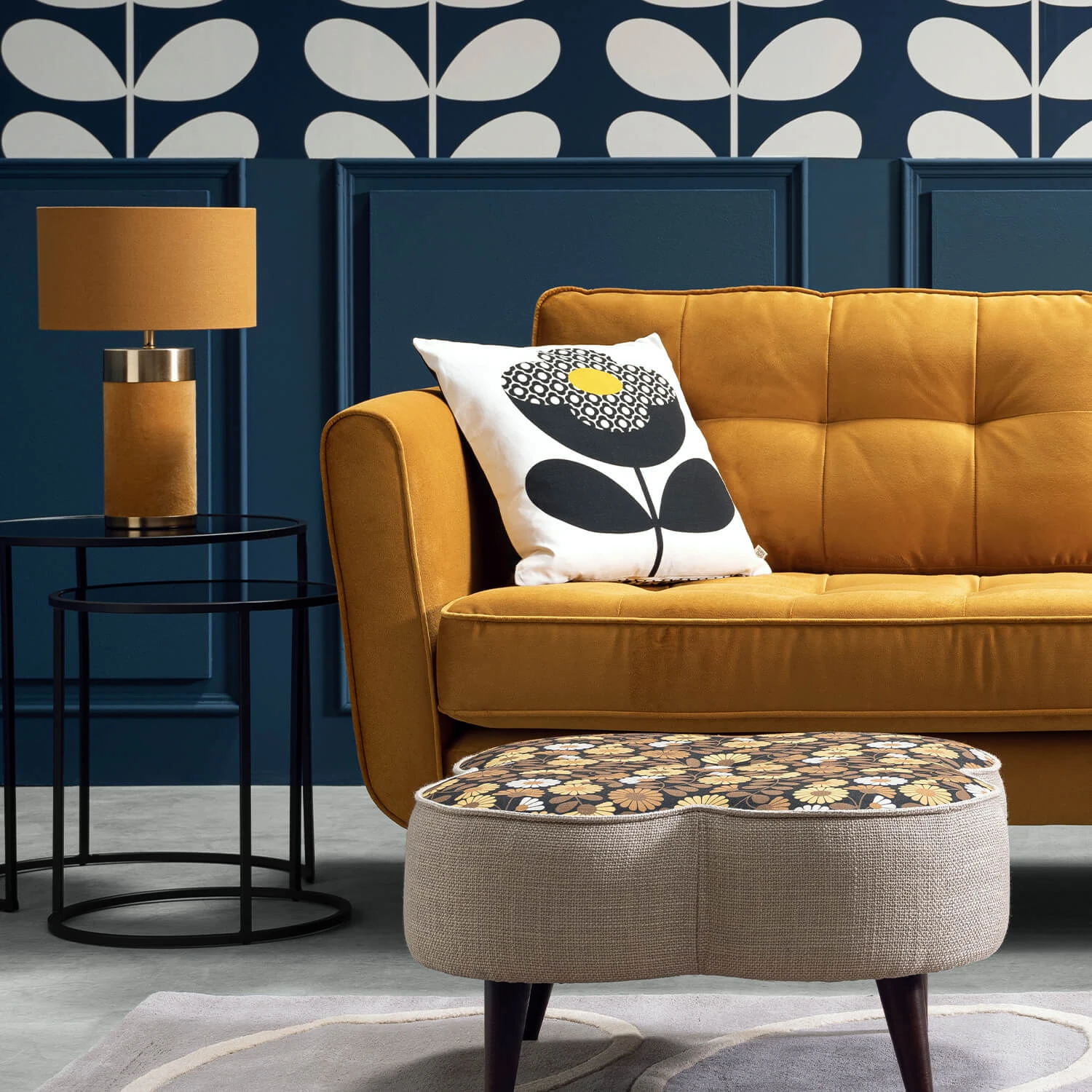 Make a statement in your home with our Buttercup Stem print cushion in a bold monochrome and buttercup colourway. Featuring a classic Orla four petal flower design on the reverse. A new take on a classic Orla print for this season.
