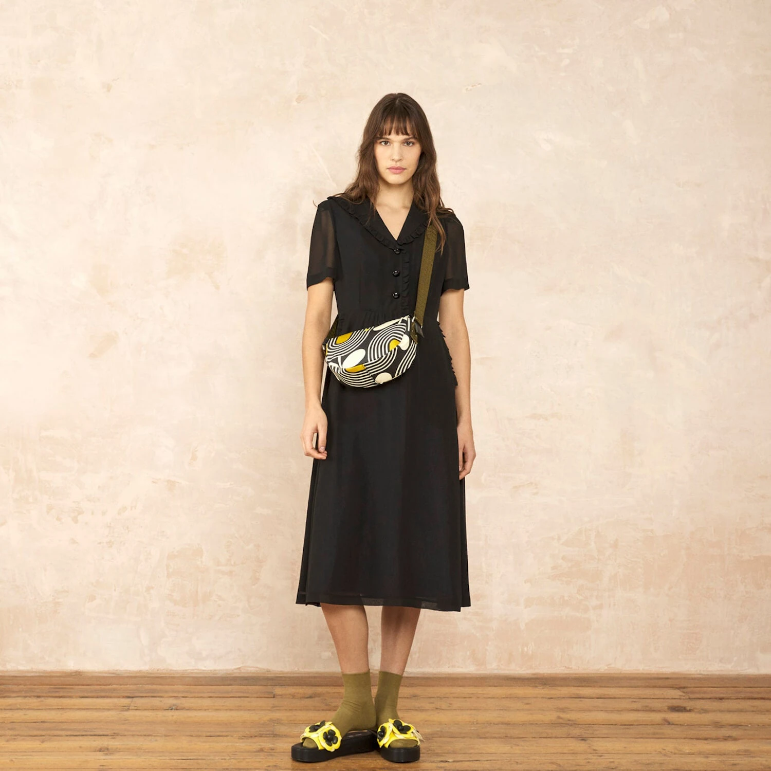 Mini Rounder Crossbody – Giant Striped Tulip Noir